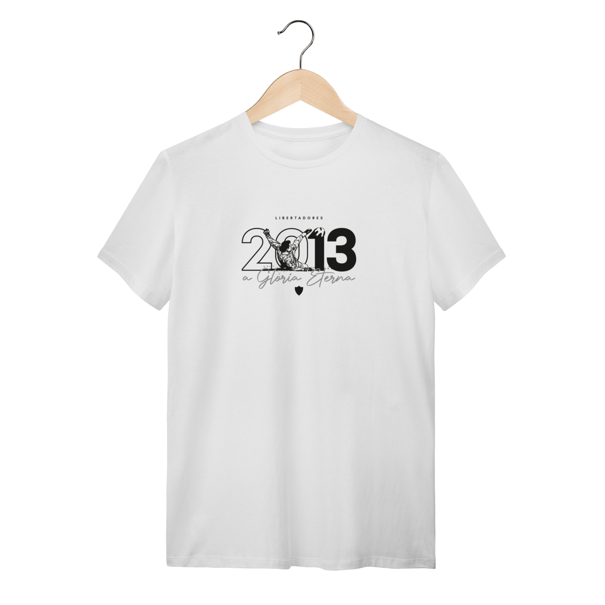 Design: Gráfico, com a silhueta de Victor em posição de defesa, o ano "2013" e a frase "a Glória Eterna". Alinhada à nossa Coleção Conquistas & Orgulho de Minas.
