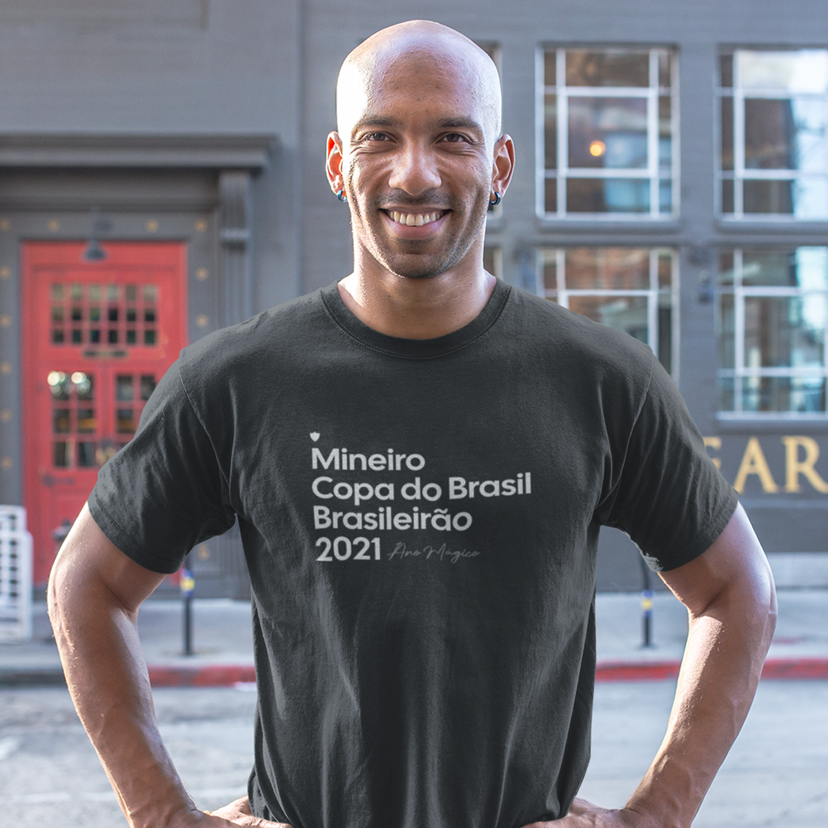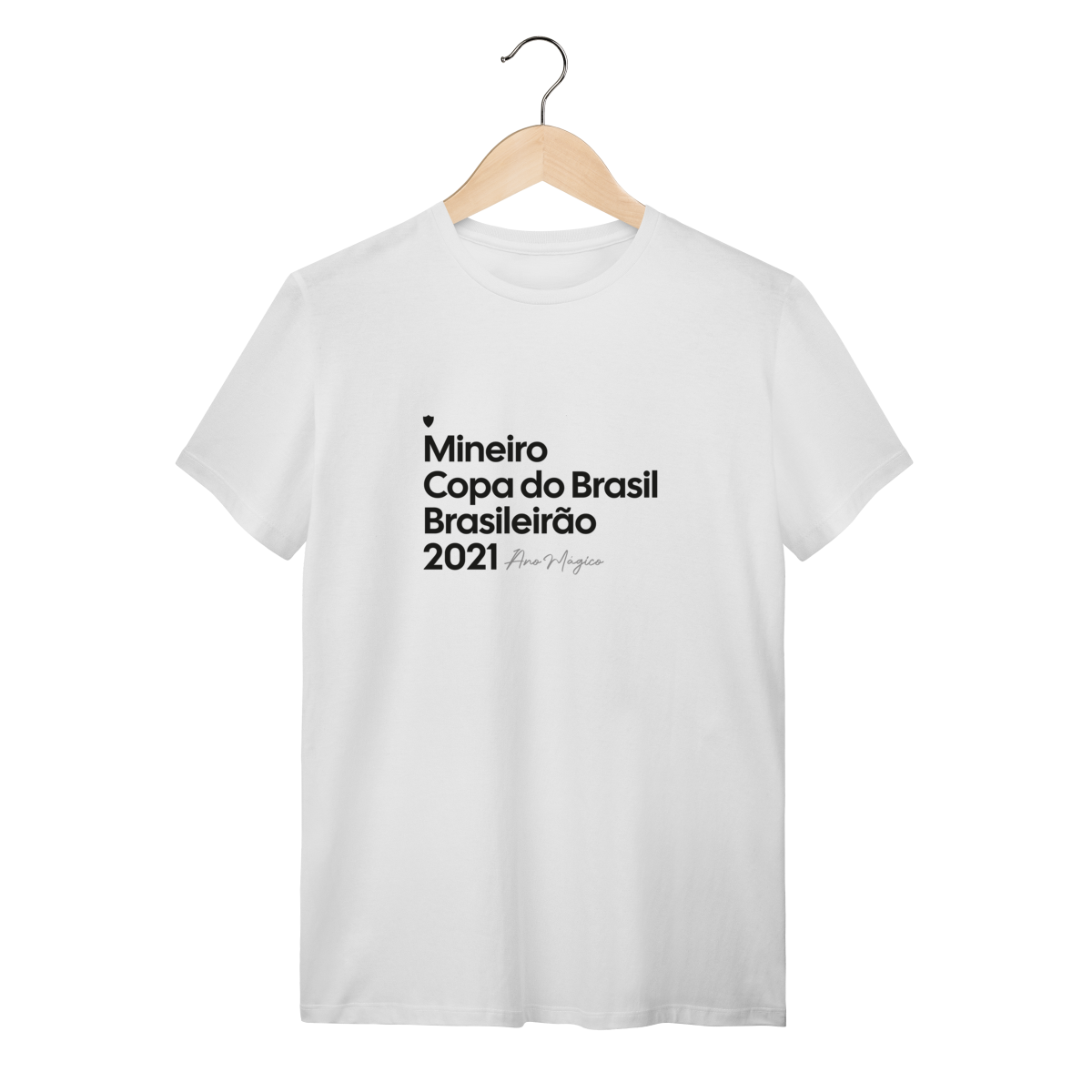 O Ano que Entrou para a História. A T-Shirt "2021 Ano Mágico" celebra o feito inédito da Tríplice Coroa Nacional: Mineiro, Copa do Brasil e Brasileirão. Uma estampa essencial para o torcedor que viveu e vibrou com essa supremacia.