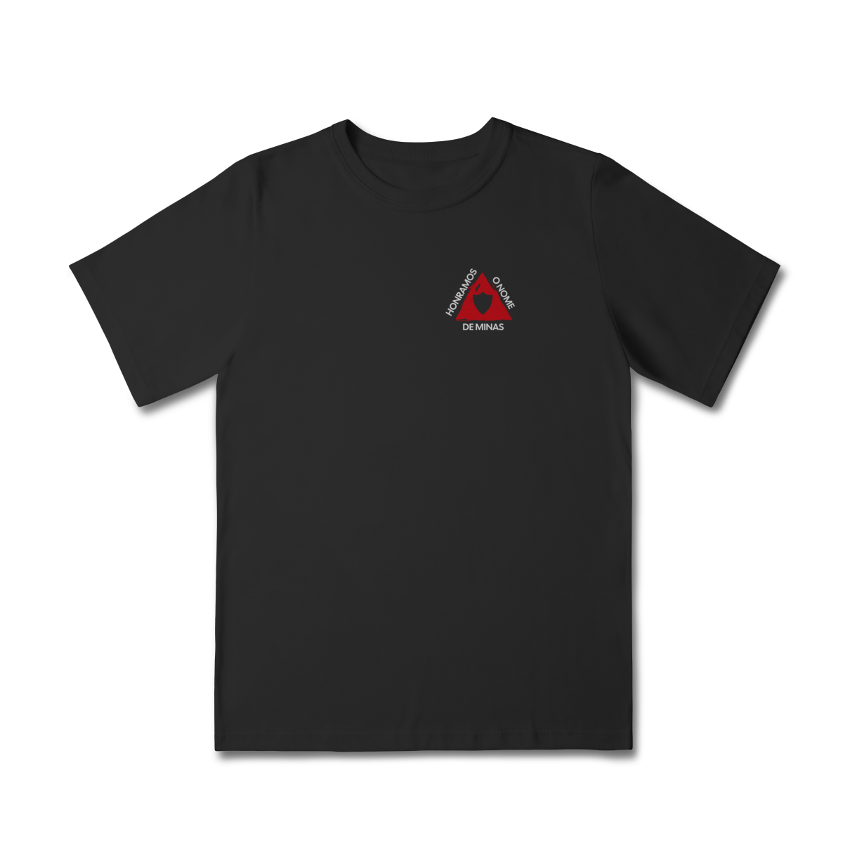 O Orgulho Mineiro no Pequeno Atleticano. A T-Shirt Infantil "Honramos o Nome de Minas" é uma declaração de pertencimento à nossa terra, perfeita para vestir a criança com a tradição do Galo. A estampa, centralizada, remete à bandeira e ao nosso valor.
